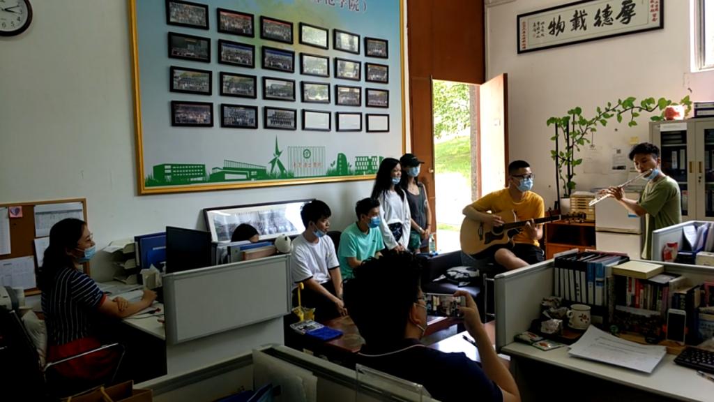 毕业生们在校团委办公室里演唱