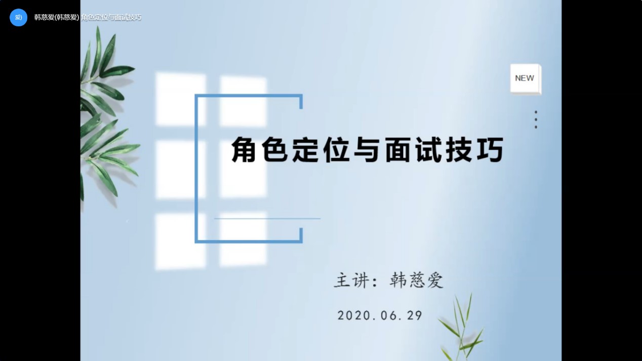 6月29日下午,伟德国际1946邀请员工韩慈爱老师为教育系的同学们在线进行了一次主题为“角色定位与面试技巧”的专题讲座。