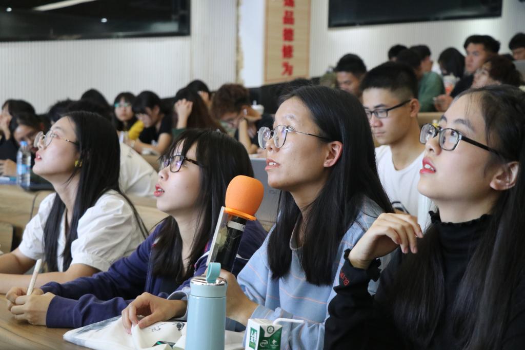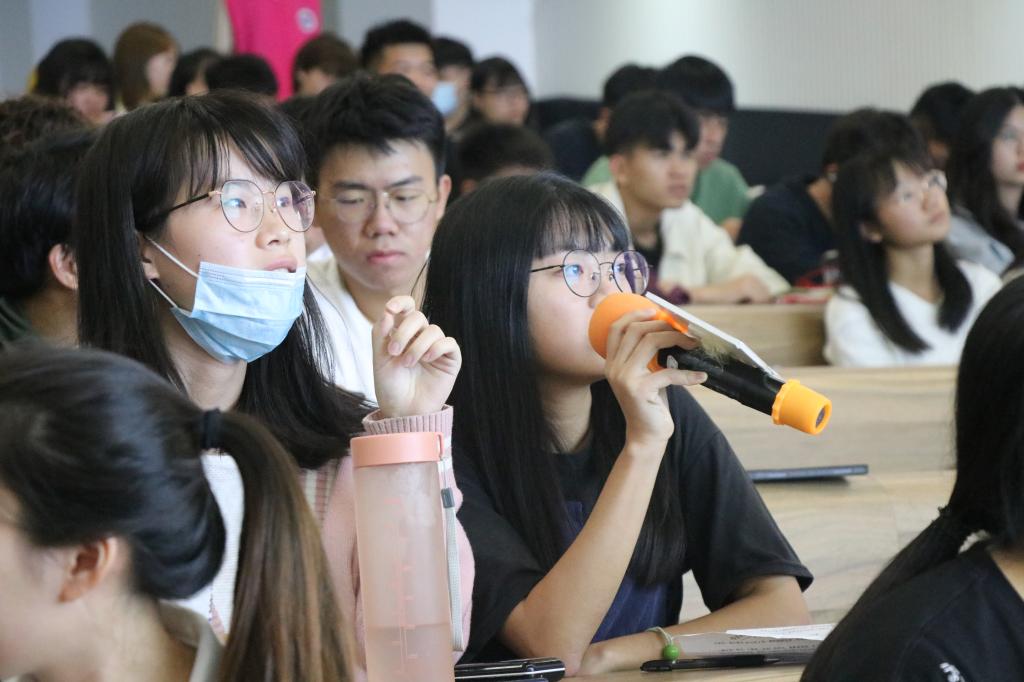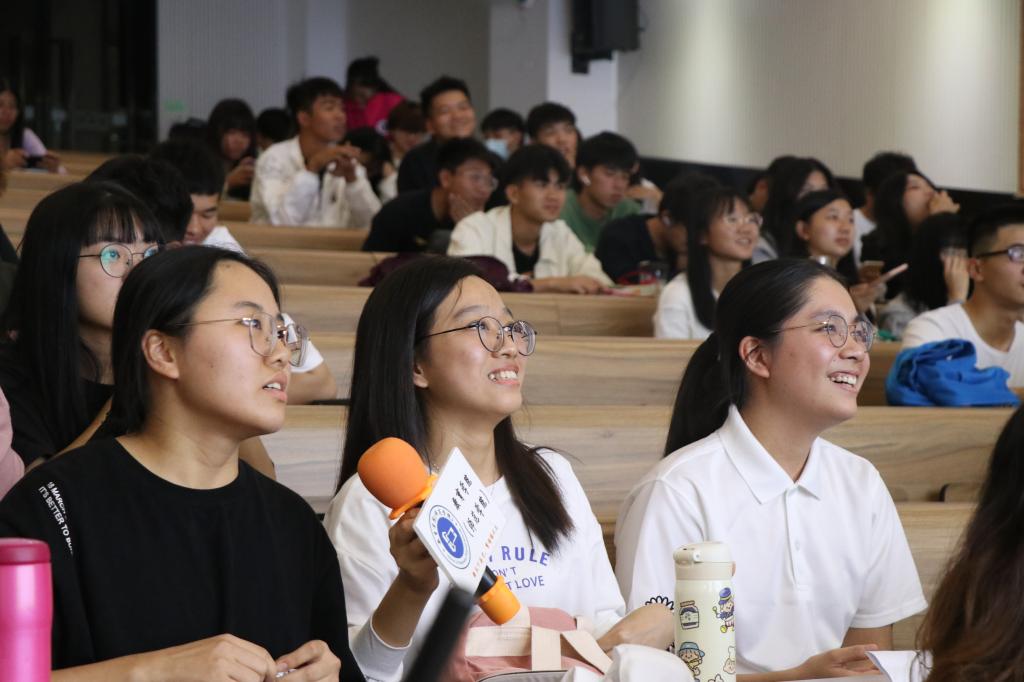 表演结束后,主持人陈俞嘉同学邀请台下观众进行互动答题,答题成功的观众进行奖励。现场观众情绪激昂,积极参与。