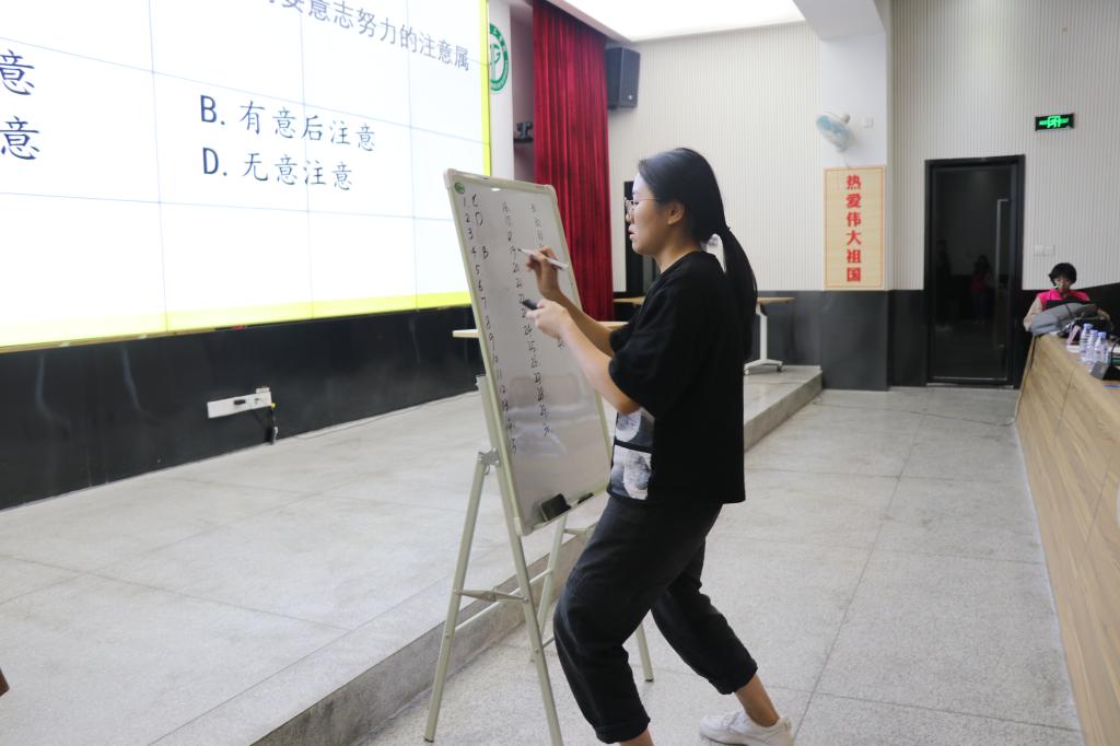然后,四个小组进入了紧张的答题环节。在经历了必答题、小组对抗和限时冲刺三项答题后,现场工作人员统计比赛结果,况小雪老师做本次比赛的总结。况老师对各小组进行了的仔细深入的点评也谈及了心理学的奥妙之处,使得更多的同学们对心理学产生浓厚的兴趣。