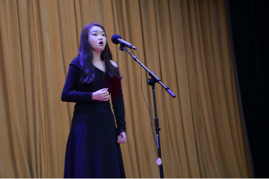音乐会在优美的音乐中,主持人缓缓走上舞台,宣布本次音乐会正式开始。首先由陈芷茵同学演唱《我怎样去爱你》让场上的氛围迅速升温;接下来一首《眺望》让我们感受到热切期盼海峡两岸统一的情感;一首《多情的土地》让我们感受到作词人和作曲家把对祖国的爱渗透到了祖国的一山一水、一草一木中;《一个黑人姑娘在歌唱》表达了诗人对这不公道的世界以及不人道的种族歧视进行揭露和谴责;《敕勒歌》让我们领略到北国草原壮丽富饶的风光,体会到浓郁的草原气息……