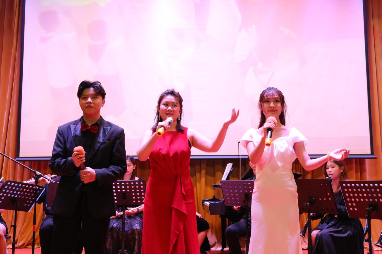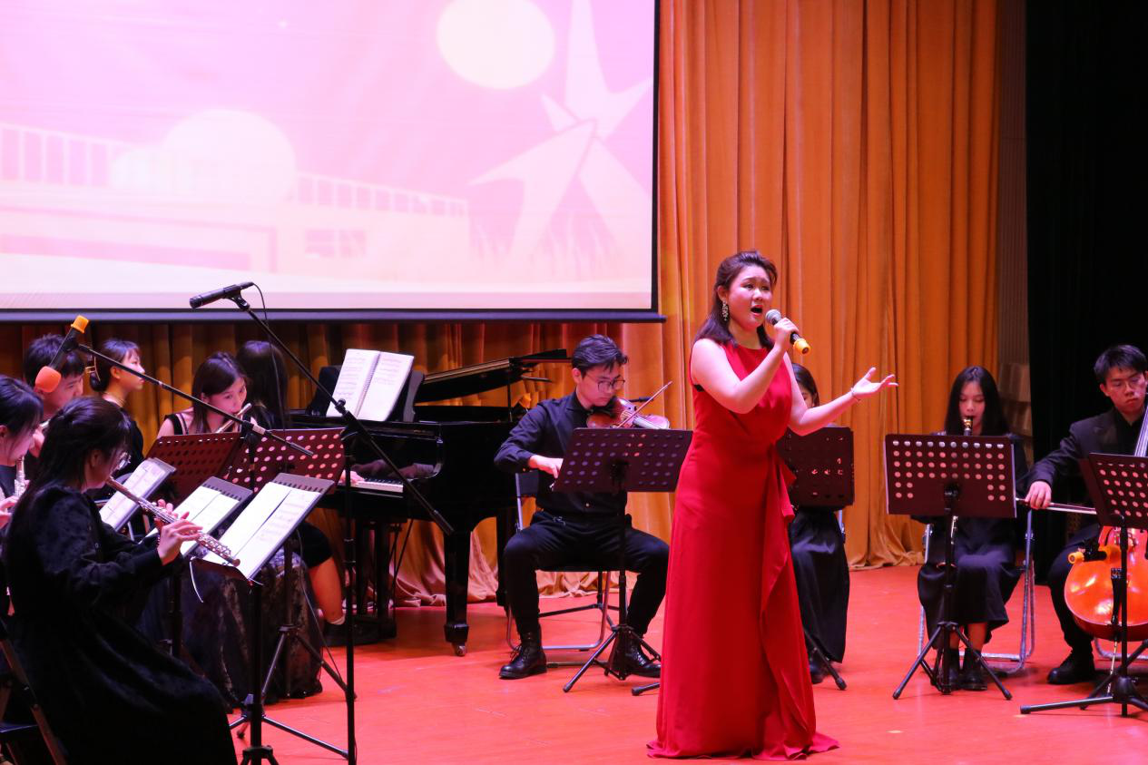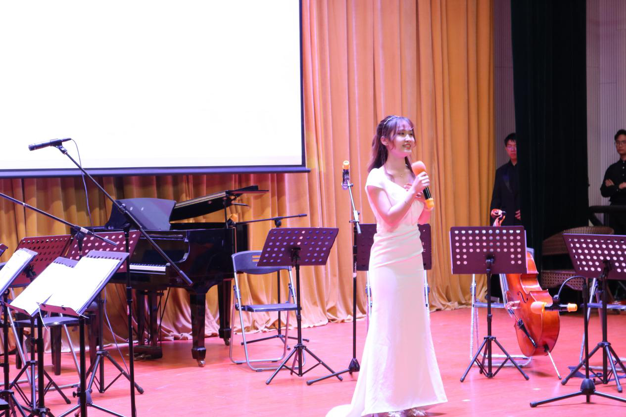 本次音乐会内容精彩,为观众们呈现了一场高品质的音乐盛宴。《大湾区随想》以积极昂扬的曲调为音乐会拉开序幕;张曾雅惠老师演唱的《谁不说俺家乡好》、《洪湖水浪打浪》、《绒花》三曲饱含情感,打动人心;《彩云追月》极具岭南特色的轻快曲调将人们拉入市民生活的轻松写意中;乐团演奏的《风声》、《国耻永不忘》、《我和我的祖国》抒发了浓烈的爱国情怀,让观众对国家与民族的自豪感油然而生;颜乐、潘志键老师的《那一年》用音乐的形式讲述了新时代创业者在松山湖的故事;黄志文同学以《追寻》带观众们回顾建国大业;陈芷茵同学演唱的《梨花又开放》激起了观众们的深切思乡情;合唱曲目《我的祖国》更是唱出了对祖国、家乡的无限热爱。一场场精彩表演引发全场观众的情感共鸣,赢得阵阵掌声。