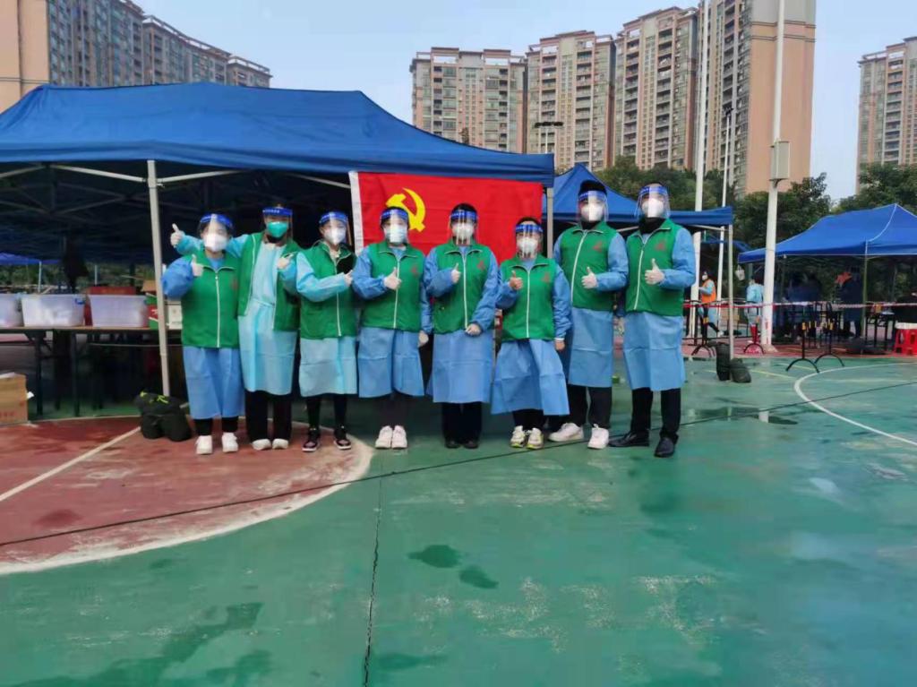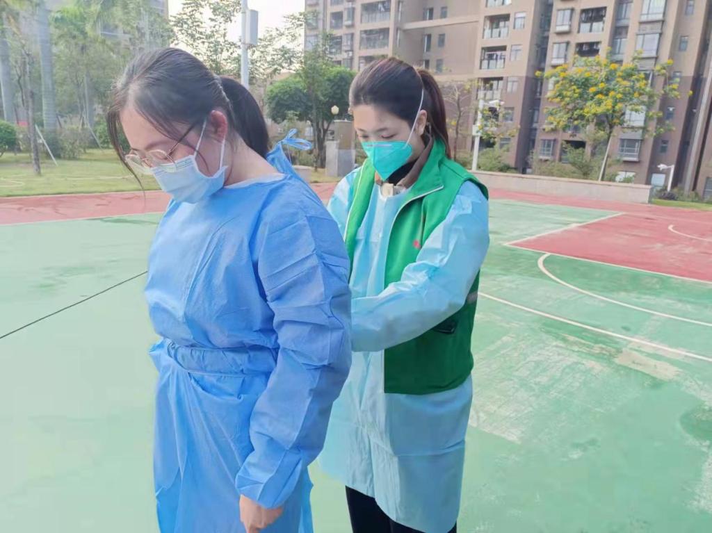 2021年12月20日,由于疫情被封控在大朗实验小学的2018级汉语言文学(师范)1班陈水婷、2018级小学教育(师范)1班王彩仪、袁淑盈三位实习生积极响应大朗镇教育系统疫情防控志愿服务队的组建,主动加入到大朗实验小学志愿服务队,并于12月21日和24日分别在大朗圣堂社区协助进行第六轮和第七轮大规模核酸检测工作。