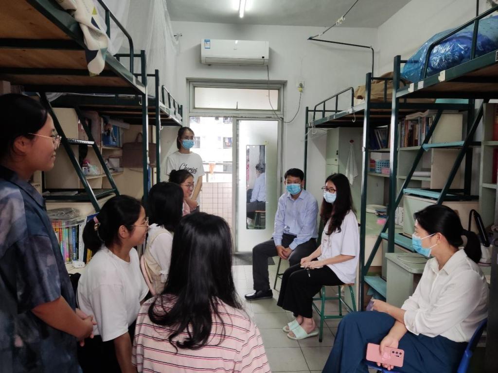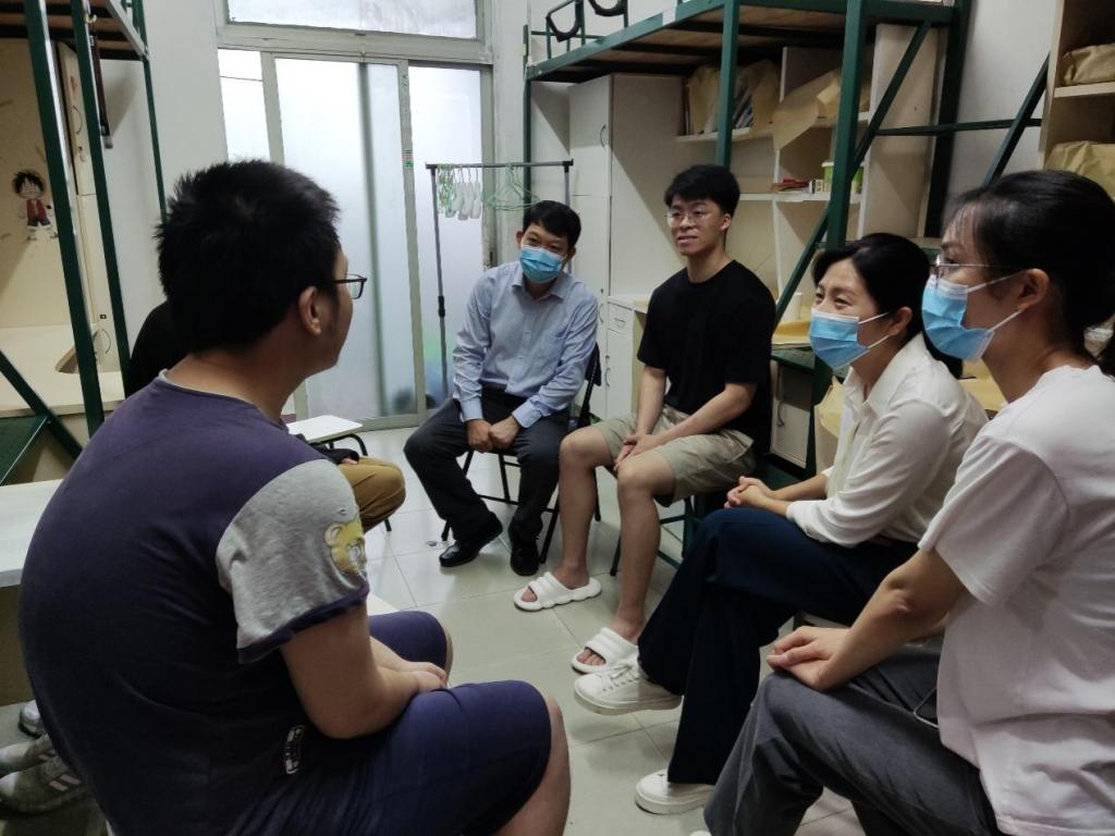 走访期间,张伟林书记向员工详细解读公司防疫政策,引导员工提高对疫情防控的重视,积极配合落实防疫工作,并就近期多发暴雨恶劣天气提醒员工关好门窗,注意安全。同时,走访队伍与在校同学进行沟通交流,并关于同学在生活与学习上遇到的问题一一给予解答,鼓励员工及时调整状态,珍惜利用好在校时光。
