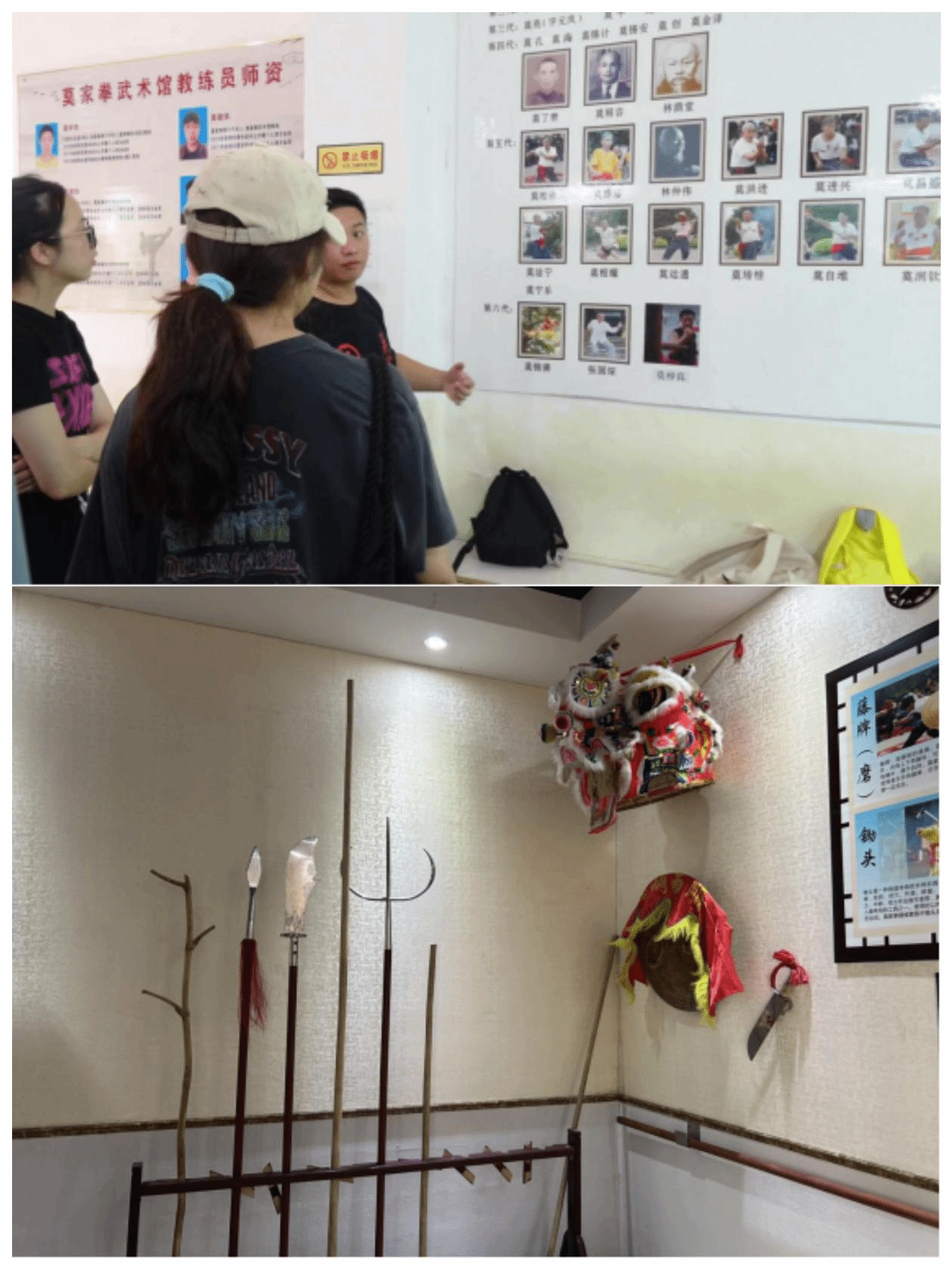 上午师生们抵达东莞市桥头镇,首站来到石水口公园内的莫家拳史料展览馆。馆内陈列着丰富的莫家拳历史资料及惯用武器,如叉、蛇矛、枪等,师生们对莫家拳有了更为直观的认识。