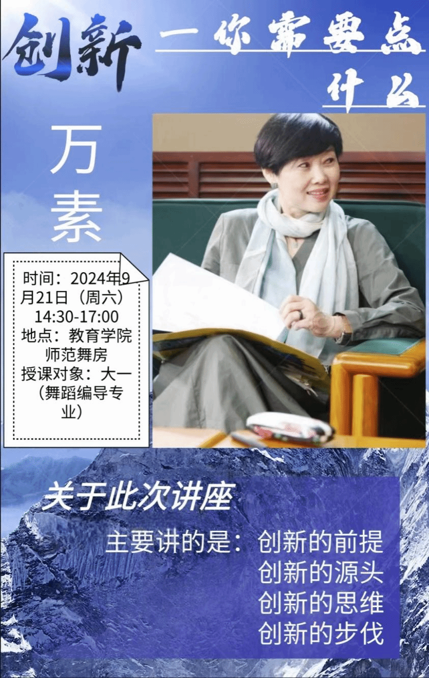 2024年9月21日,万教授面向舞蹈编导专业全体师生开展了《创新——你需要点什么?》专题指导。