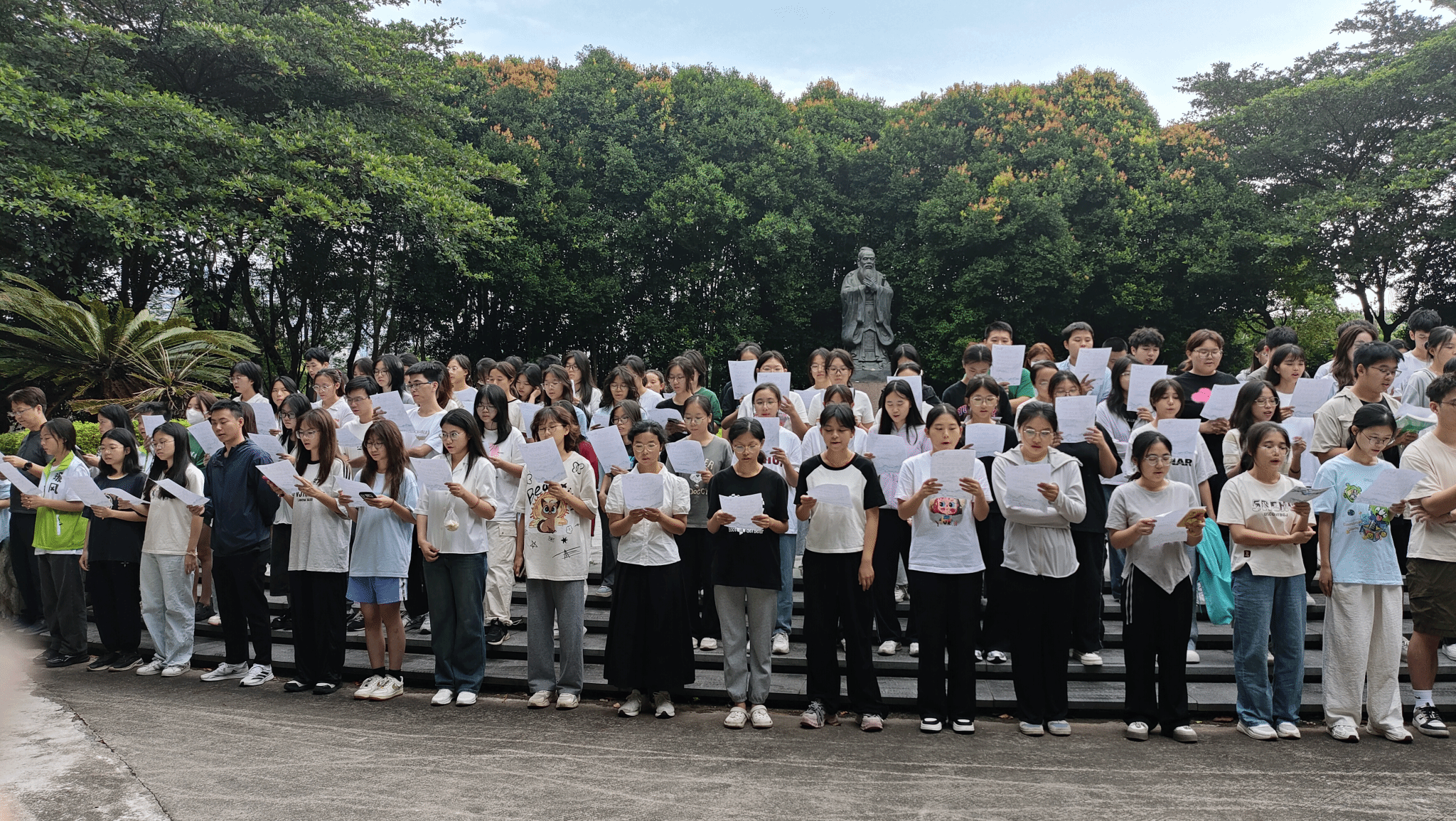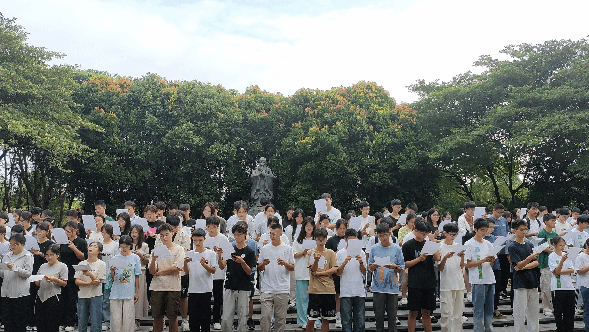 10月21日早上7:30,秋意渐浓的清晨,沐浴着微微暖阳与缕缕和风,公司成功举办“莞工文育”第一期诵读活动。公司党委书记张伟林,教育系主任况小雪,教育系2024级新生班主任仲雷、李文韬、李茂菊与来自全校不同专业的100多名同学齐聚松山湖校区孔子像前,共同品读经典,感受诵读独特魅力。