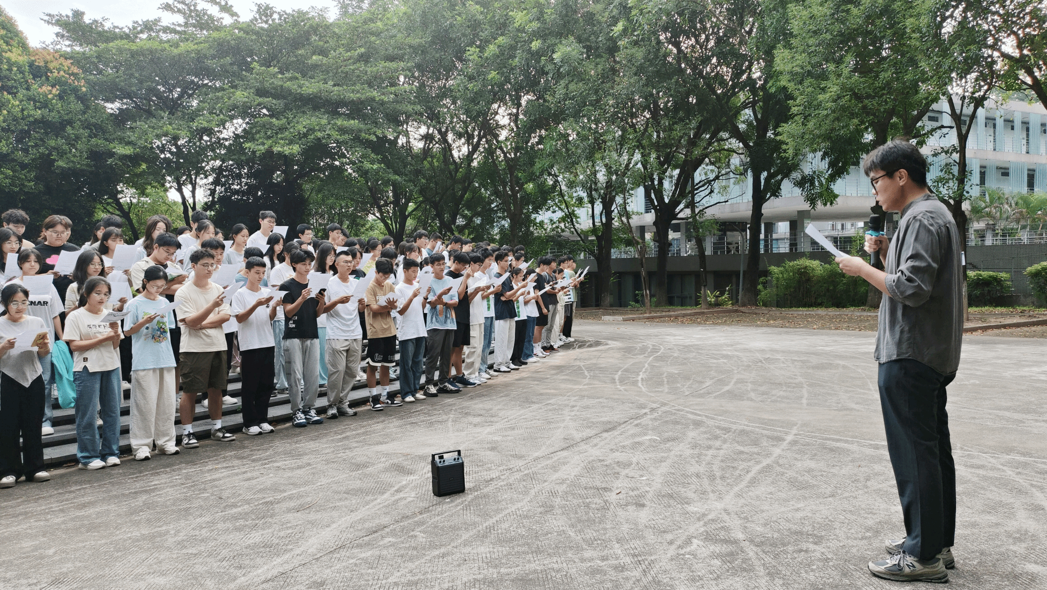 活动伊始,张伟林书记指出诵读是一种古老而美好的文化传承方式,能够丰富大家的精神世界、提升文化素养,激发爱国情怀和民族自豪感。张书记鼓励同学们积极参与诵读活动,通过诵读体悟经典文学的意蕴。随后,李文韬老师简要介绍了本次诵读篇目《学而篇》的背景与意义,并带领同学们进行诵读,现场气氛庄重而热烈。