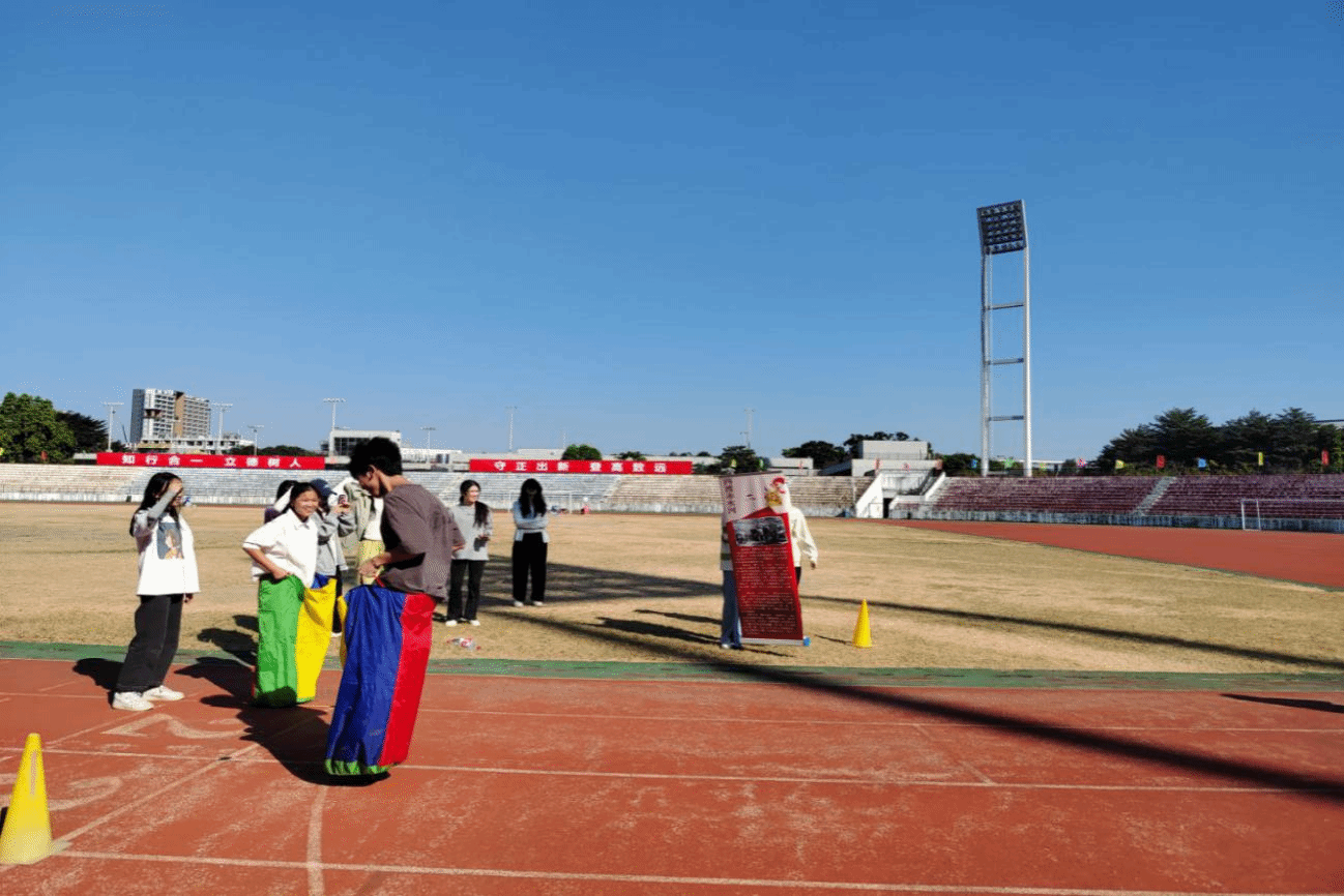 在“四渡赤水河”闯关点,队员们了解了在四渡赤水的战斗中,毛主席巧妙地指挥红军在国民党重兵围堵之间穿插迂回,化被动为主动,彻底粉碎了蒋介石企图围歼红军于川、黔、滇边境的计划。在袋鼠跳的闯关游戏中,队员们需穿着麻袋,在起点和终点间往返跳跃四次,体会红军面对困难和挑战时,以无比的勇气和坚持到底的决心与毅力,以坚定的信念和不屈的精神,取得最后的胜利。