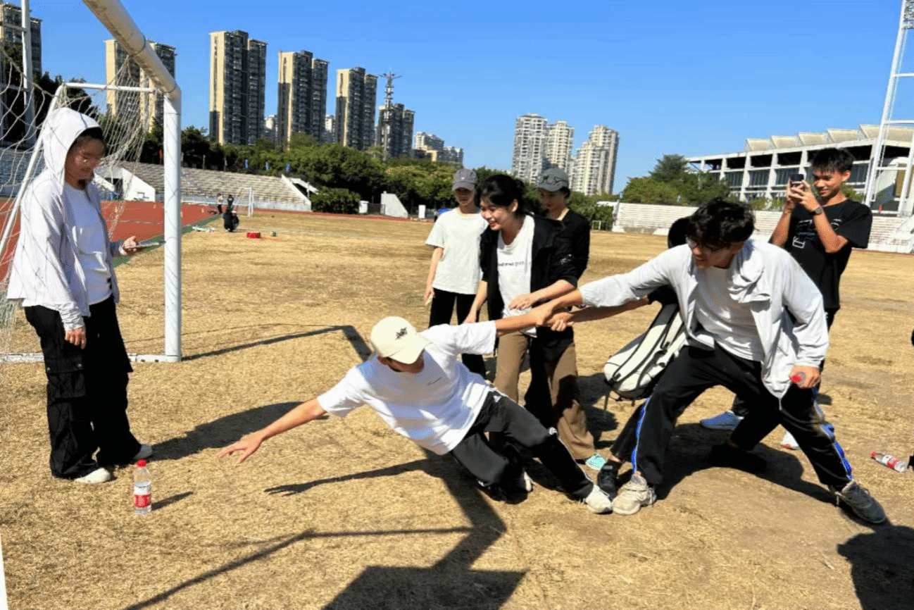 在“翻雪山”闯关点,各组队员进入无敌风火轮,首尾需交替成为第一位控制队伍前进速度和方向完成往返。在完成任务的过程中,大家感受到红军在长征过程中,需要服从指挥,始终跟随党的步伐,才能冲破困难,赢得胜利。