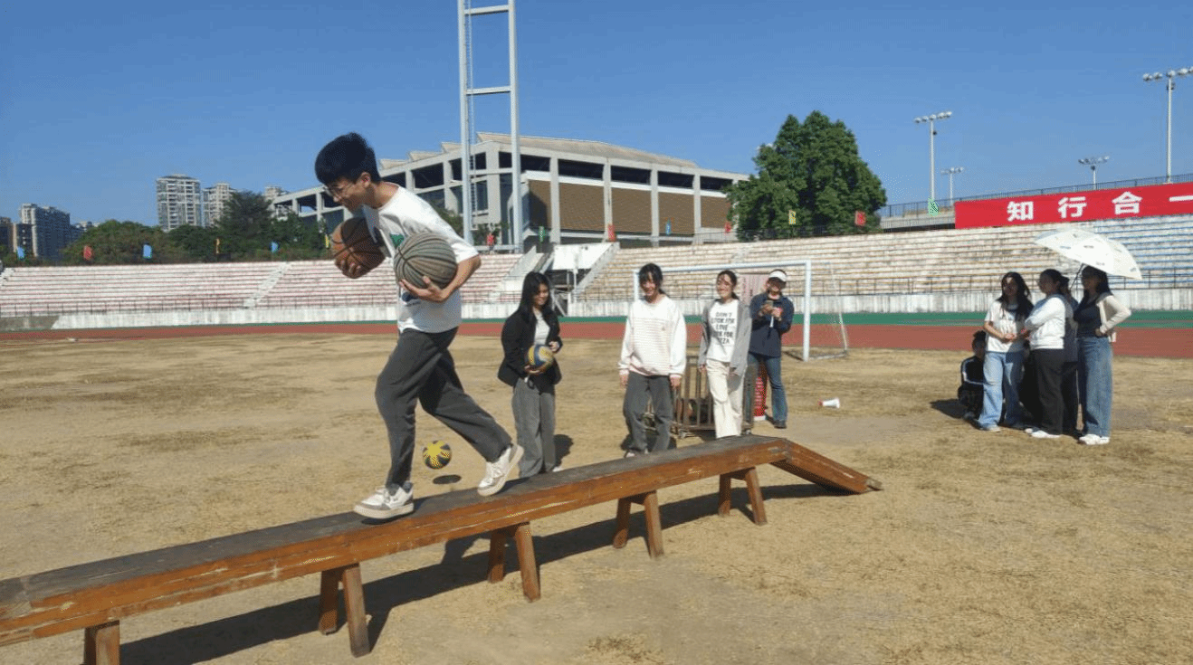 在“飞夺泸定桥”闯关点,每名队员双手分别夹住篮球,同时要躲避两面不断飞来的排球,并要保持身体平衡不掉下独木桥。在游戏结束后,大家表示深刻体会到了红军战士们在夺取泸定桥时的艰难险阻,对党取得长征胜利有了更深的认同感。