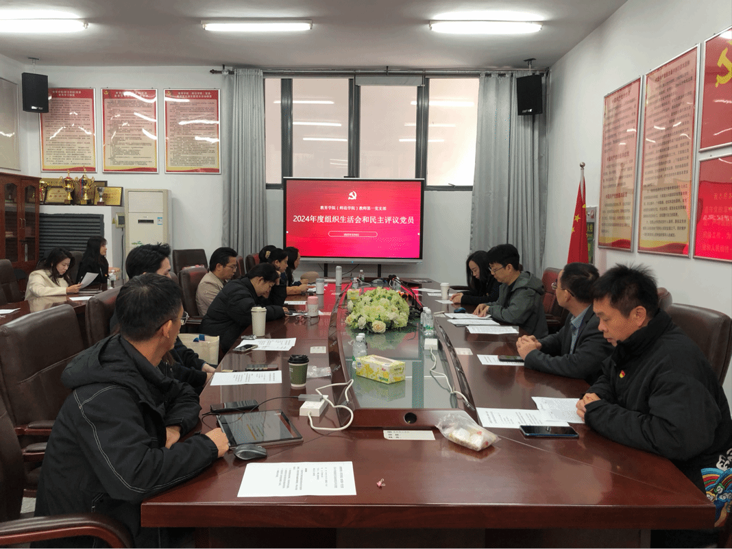 2025年3月6日下午,伟德国际1946教师第一党支部在艺术楼A303会议室召开了2024年度组织生活会和民主评议党员大会,会议由教师第一党支部书记仲雷主持,全体教师党员参加了会议。