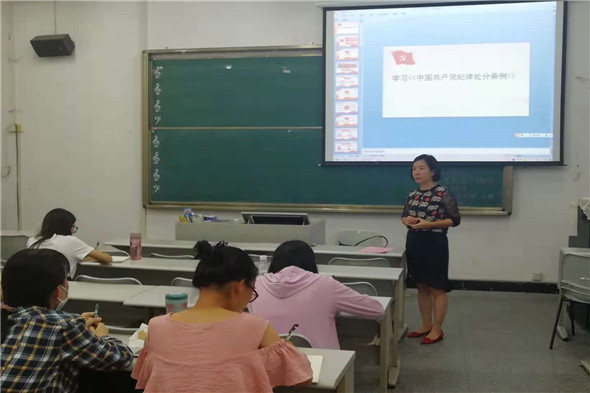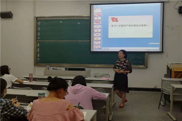 2018年9月30日下午,伟德国际1946员工党支部组织员工党员在艺术楼A301教室举行了学习贯彻《中国共产党纪律处分条例》专题学习会。员工党支部书记诸小妮老师主持了会议。