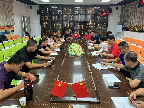 2019年6月24日上午,体育教师党支部在体育中心会议室召开党员会议,支部书记黎荣传达了公司委员会委员选举和出席公司第三次党代会代表选举,公司“两委”委员酝酿等工作精神和要求。随后在体育中心健美操房开展一场以体育活动促交流,增强党员间互信合作的主题党员活动。