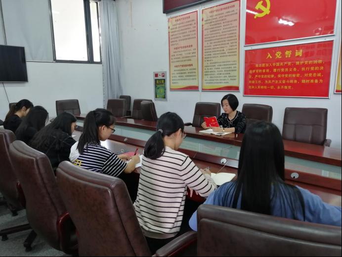 会上,党支部书记诸小妮分别从《条例》的出台背景、主要内容,党支部的三大定位、七项职责、工作五条原则、八项基本任务,党支部设置六种方式、两个程序,支委会建设六项规定以及党支部标准化建设具体要求等方面,向全体员工党员进行讲解。诸小妮老师要求全体员工党员要继续深入学习《条例》,并持之以恒在《学习强国》手机平台上加强学习,不断提高自身的政治觉悟和党性修养。大家表示要以实际行动,提高思想认识,认真落实学习任务。