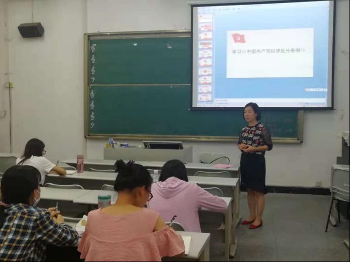 2018年9月30日下午,伟德国际1946员工党支部组织员工党员在艺术楼A301教室举行了学习贯彻《中国共产党纪律处分条例》专题学习会。员工党支部书记诸小妮老师主持了会议。
