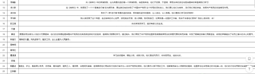 节目观看完毕,党员同志们纷纷在群内发表感言,老党员吴东涛同志说:“聆听了一群‘逆行者’英勇抗疫的故事,那种爱和坚守的精神,让人感动,令人敬佩。他们是我们学习的好榜样!”史海峰感慨:“榜样其实就在我们身边,他们的常态是平凡的,而当危难时刻就能绽放光芒!”梁兴源留言:“在《榜样5》中,我看到了一个个‘最美逆行者’的光辉形象,更加真切体会到了作为一名党员的深刻含义,我们要以他们为榜样,践行我们党的宗旨,发挥共产党员的先锋模范作用。”
