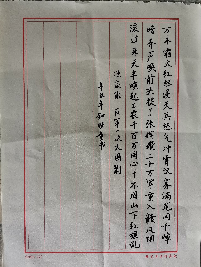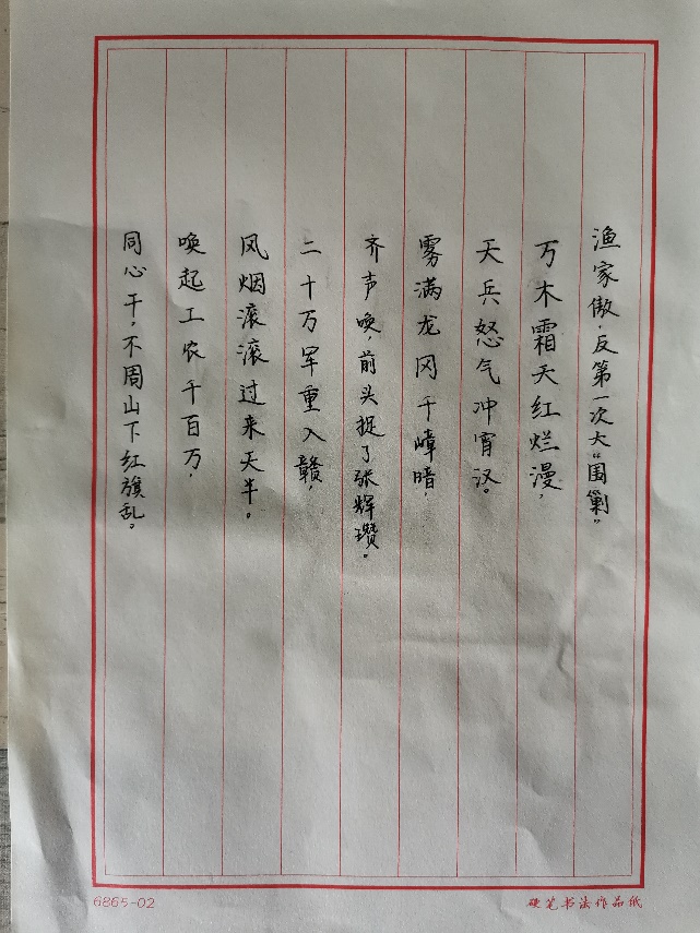 党员们拿起手中的硬笔或毛笔,书写经典诗歌《渔家傲·反第一次大“围剿”》,一笔一划中,感受反第一次大“围剿”胜利的喜悦,致敬经典。书写结束后,大家一起朗诵《渔家傲·反第一次大“围剿”》 。为深入理解,党员们还一起学习了相关历史背景知识,以此深化对于经典的认识。最后,大家共同分享自己的感受与学习心得。