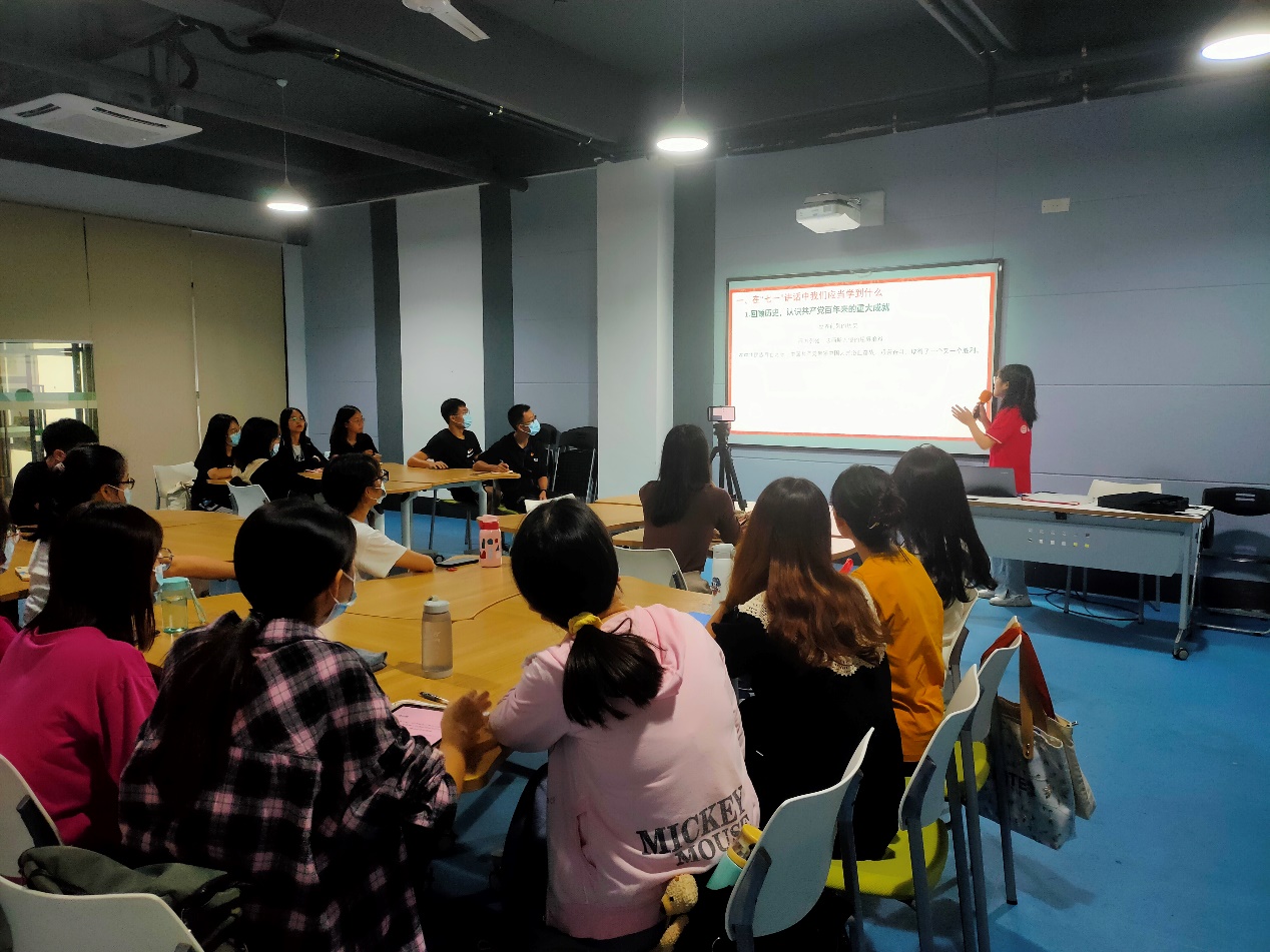 田嘉华同学回顾了历史中农民运动与资产阶级运动的失败,指出中国共产党诞生是历史趋势下的必然。她从老员工视角,运用亲身经历的事例,生动阐明中国共产党带领全国人民在现代化建设中取得的辉煌成就。以史为鉴,展望未来,青年一代必将大有可为,也必将大有作为,期望员工党员们坚定我党第二个百年目标的信心与决心,不忘初心,砥砺前行。