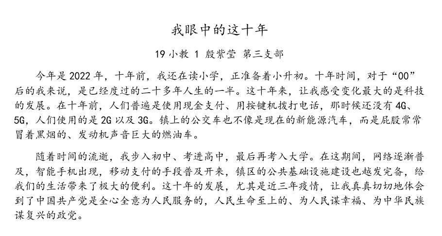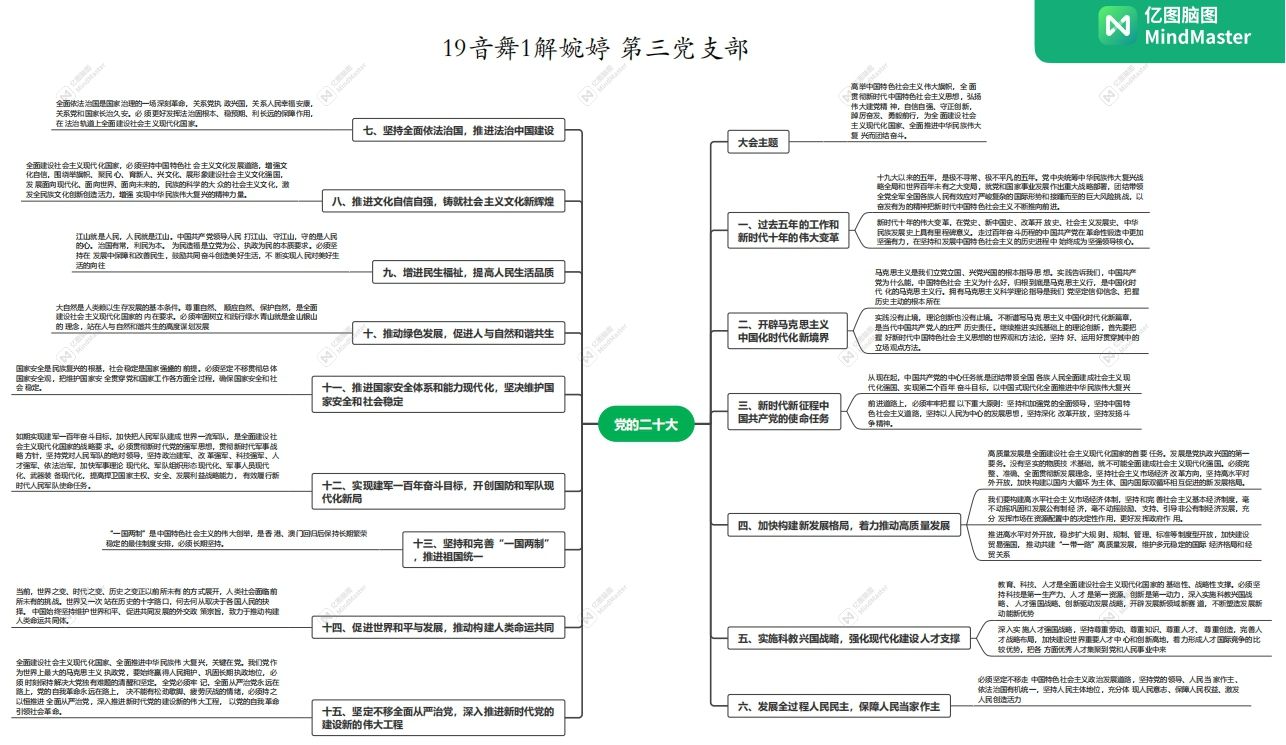 集中收看开幕会结束后,三个员工党支部分别组织学习讨论,纷纷表达了对党的二十大胜利召开的深刻感悟。员工党员以“我眼中的这十年”为题,从体育健身、教育、交通、科技等多方面分享了个人十年里所感受到的变化和社会的进步,进一步加深对党的二十大报告的理解,并把党的二十大报告内容整理成思维导图,与其它党员同志共同分享和学习。
