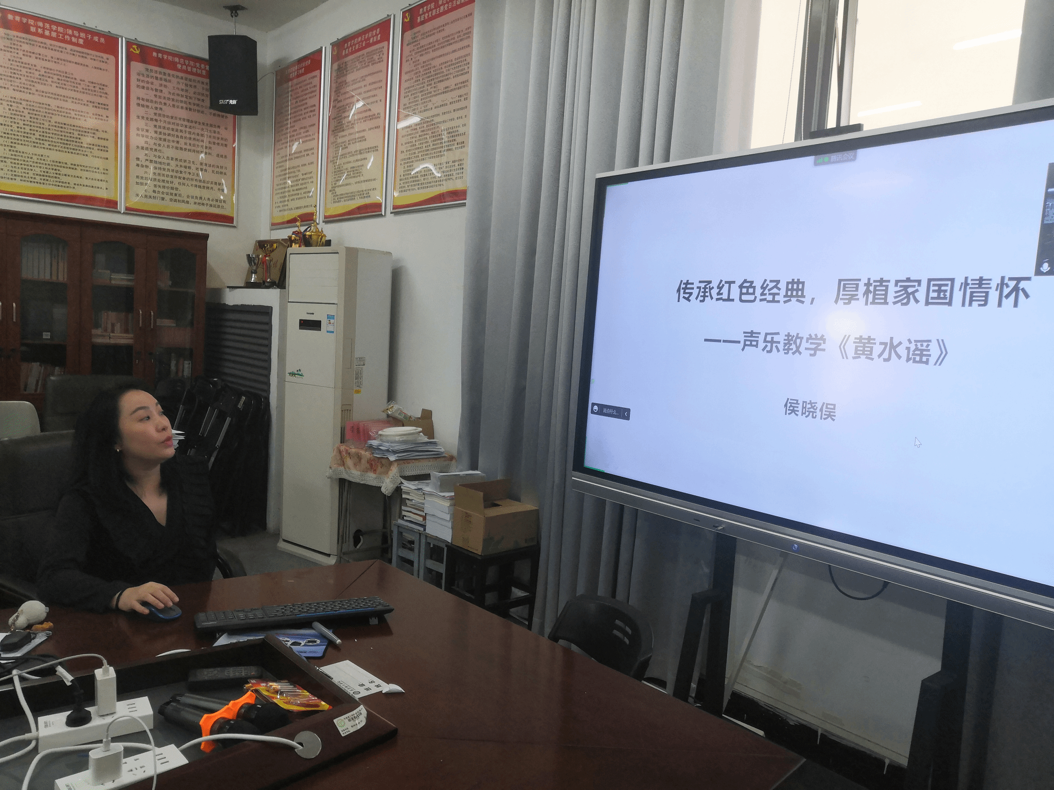 学习结束后,教师第一党支部结合学习党的二十大精神,开展了“课程思政课堂教学设计初赛”主题党日活动。况小雪、侯晓俣、张锐、李卉四名教师党员参加了比赛。