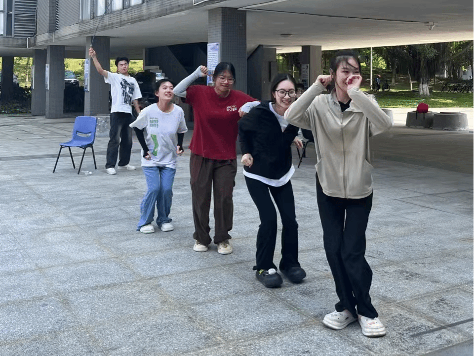 在“贴笑脸”打卡点中,同学们两两组队,一人负责蒙眼粘贴,一人负责引导。通过这个游戏,同学们可以建立健康良好的心理信任关系。