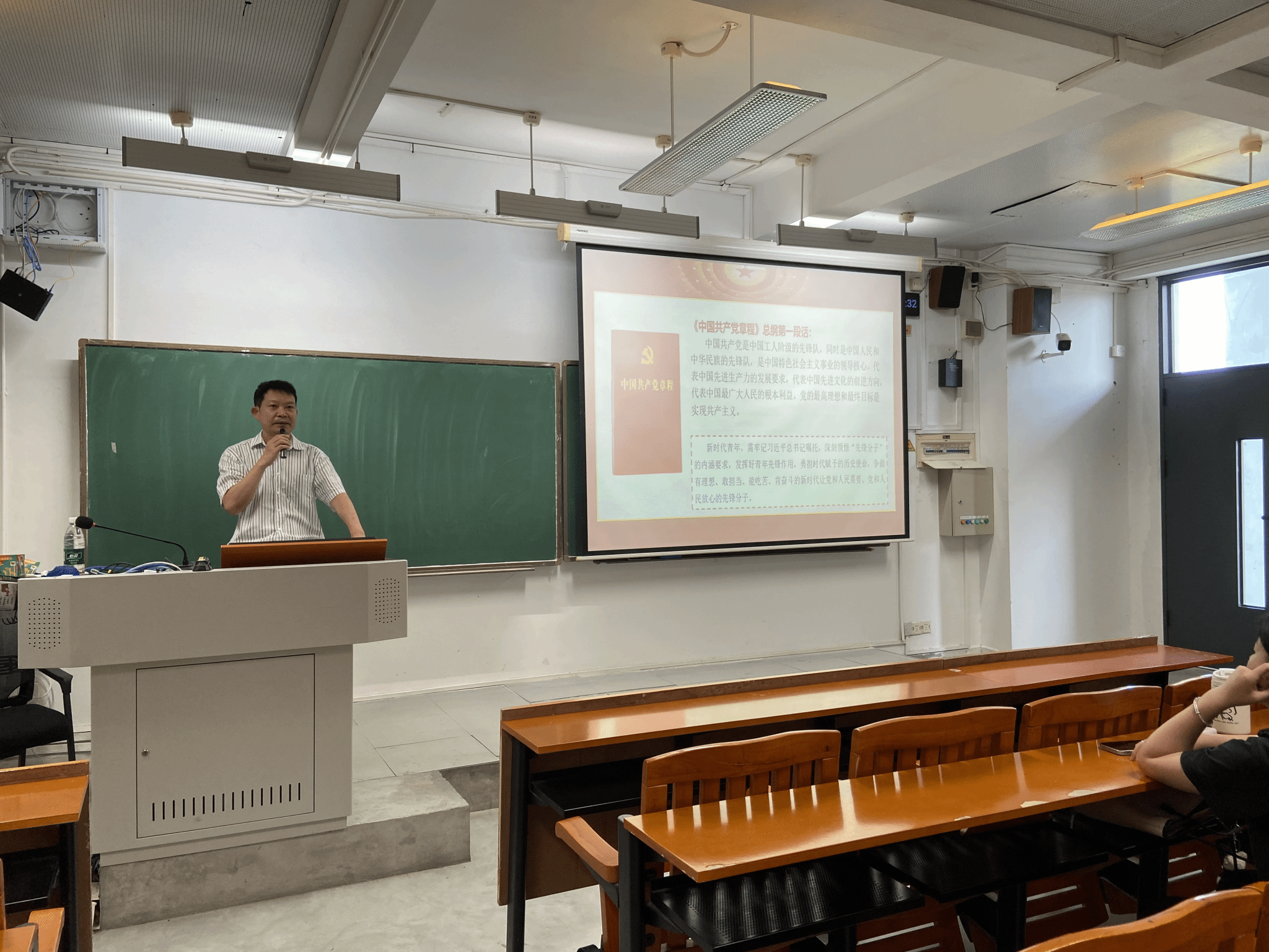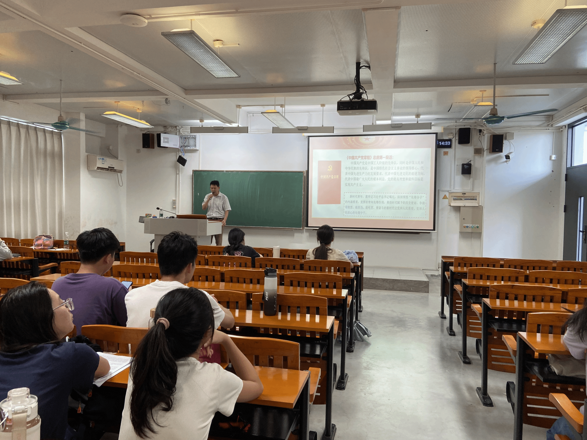 张伟林在授课中,首先以提问互动方式导入,有效调动入党积极分子的参与积极性。他结合通俗易懂的语言与典型生动的案例,对《中国共产党章程》的核心内涵及重要意义进行深入剖析。随后,围绕“先锋分子”的具体内涵与要求,他从政治、精神、格局、利益、行动五个层面,系统阐述了入党积极分子如何充分发挥青年先锋模范作用、切实肩负时代赋予的历史使命,明确提出要努力成为有理想、敢担当、能吃苦、肯奋斗,且符合党和人民需要、让党和人民放心的新时代先锋分子。