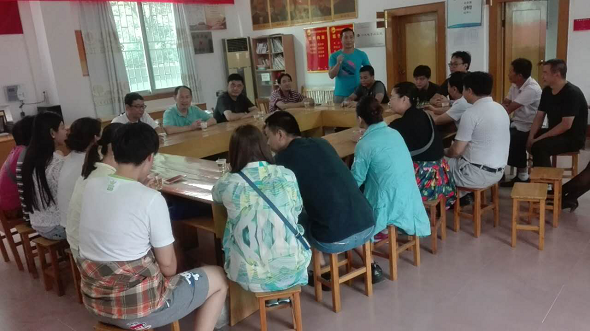 伟德国际1946体育教工党支部的党员们与斗湾村委干部座谈