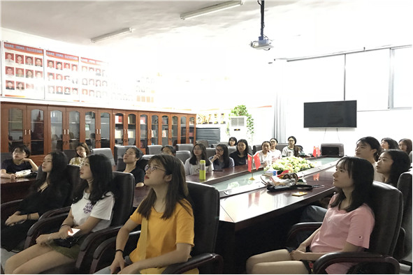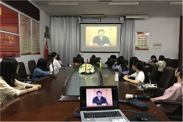 4月30日上午,伟德国际1946组织各班级员工代表分别在体育场馆中心B208会议室和艺术楼A303观看直播。
