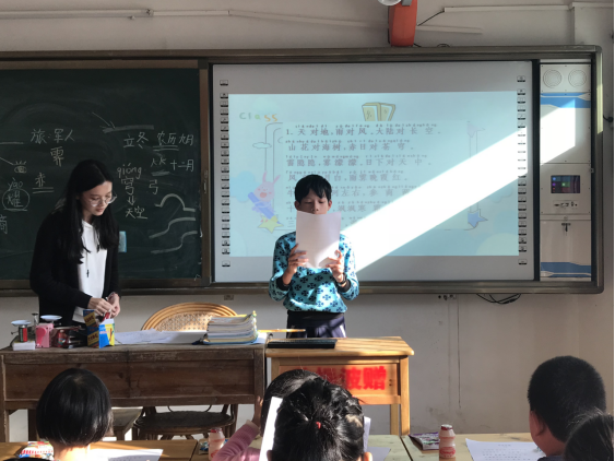 在紫金县彩头小学义教的过程中,参与活动的蒲公英项目成员们还为彩头小学的员工们带上了礼物,精彩的授课以及多样的游戏活动。义教活动以袁同学“笠翁对韵”的课堂开始,她以多媒体的方式为孩子们呈现了来自诗中的美妙故事与情景,孩子们听的津津有味,授课的过程中不时传出掌声与呼应声。在游戏环节中,参与员工与孩子们结对玩游戏,在游戏中拉近了与孩子们的距离。