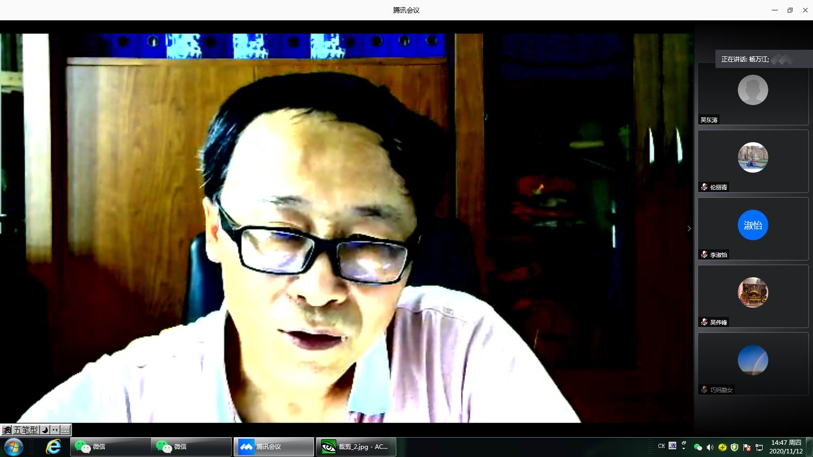 2020年11月12日下午,伟德国际1946党委书记杨万江通过网络视频会议为教职工讲专题党课,全体教职工参加了会议。