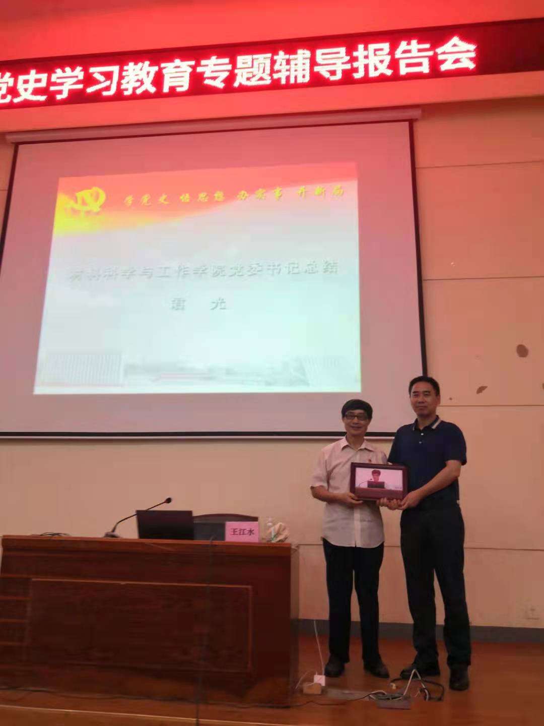 最后,材料科学与工程公司党委书记君光作总结发言,参会人员代表与王江水同志合影留念。