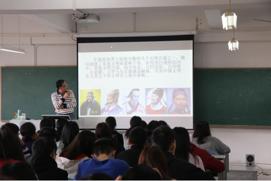 夏志有老师作简短介绍后,杨书记以资本主义帝国的侵略和近代以来中国人民的反侵略斗争为主线,从古代中国为什么没有孕育出更高的生产方式、资本主义帝国对中国的侵略对近代中国社会的影响、中国贫困落后的总根源以及如何认识近代中国人民的反侵略斗争及失败的原因教训这四个基本内容展开讲课,娓娓道来,深入浅出。