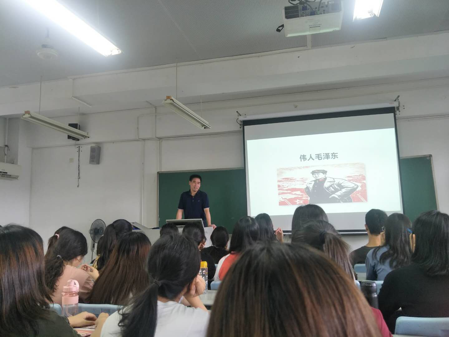 为响应公司思政育人号召,2019年9月9日上午,伟德国际1946余意经理在松山湖校区6F303教室为2018汉语师范1班、2018汉语师范2班、2018音乐舞蹈1班的同学们上了一堂别开生面的毛概课——“伟人毛泽东”。