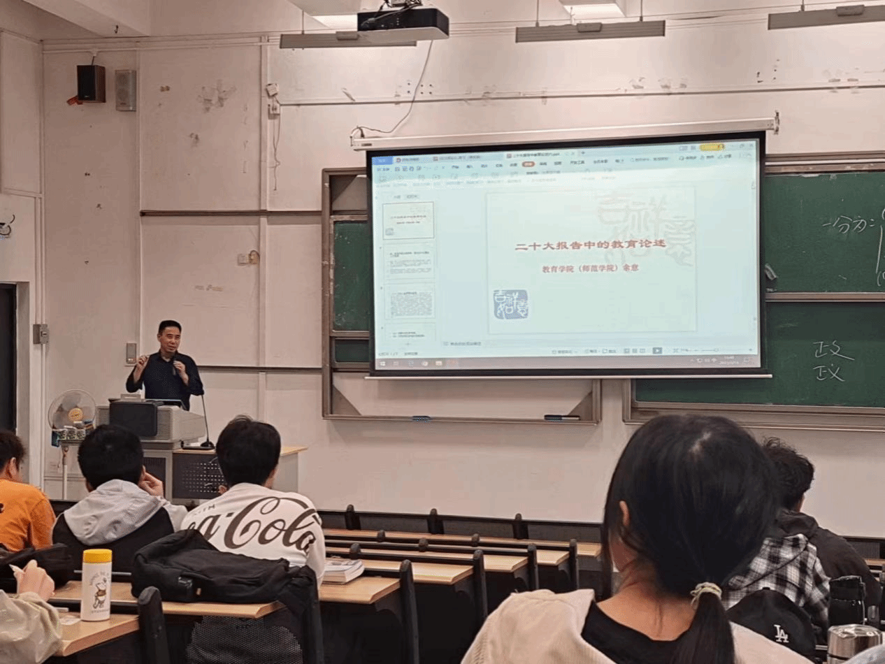 2023年3月13日和14日,余意经理在松山湖校区综合教学楼为21级自动化2班、汉师2班、舞编2班、光信1班、光信2班、音教1班、音教2班同学上了思政第一课——党的二十大报告中的教育论述。