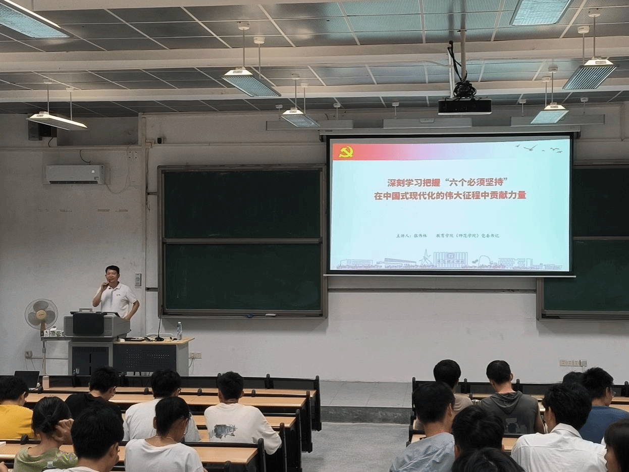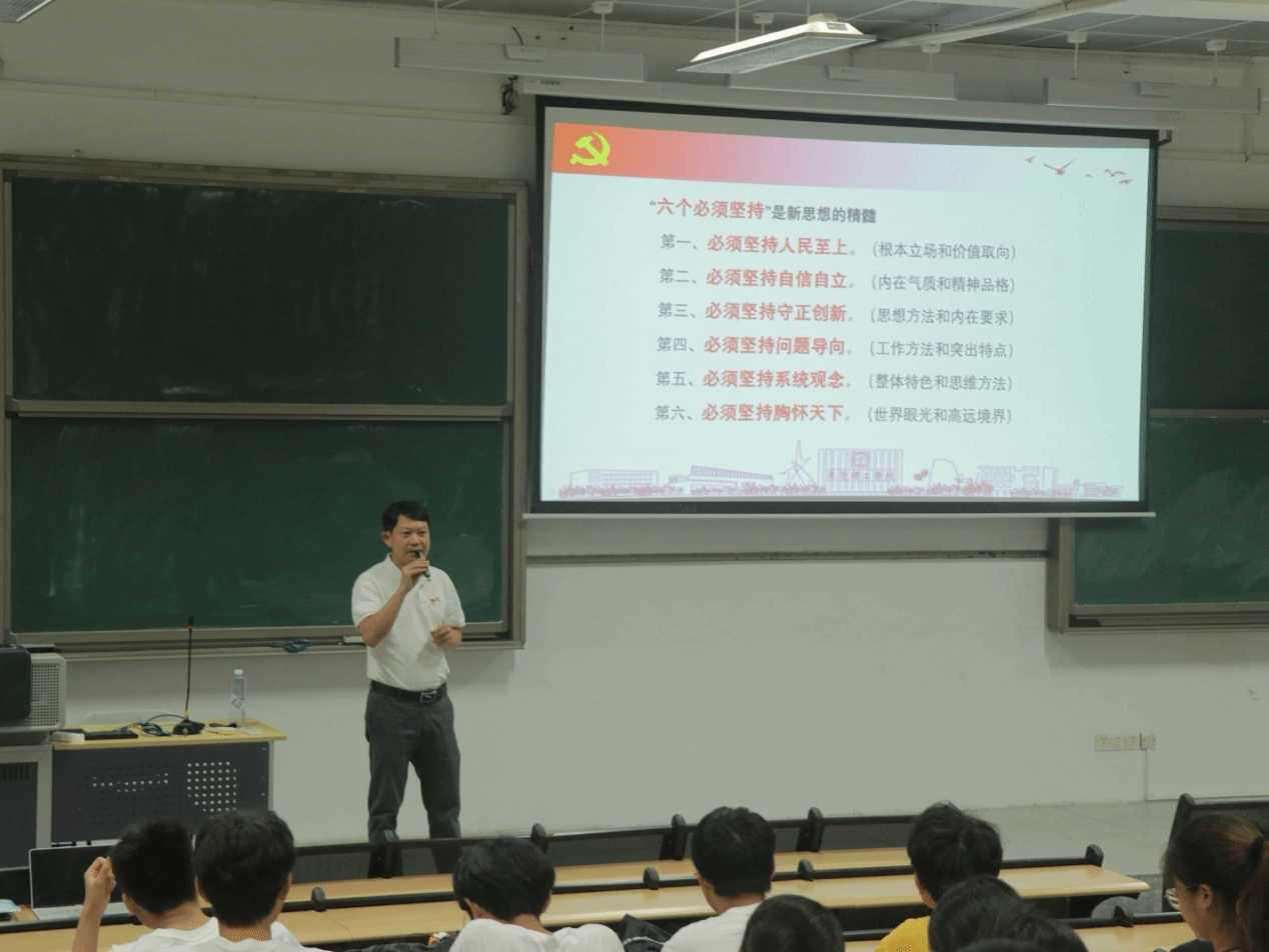 2023年10月25日下午,公司党委书记张伟林在6E-105教室为2023级环境工程、化学工程专业的同学讲授了主题为“深刻学习把握‘六个必须坚持’在中国式现代化伟大征程中贡献力量”思政第一课。