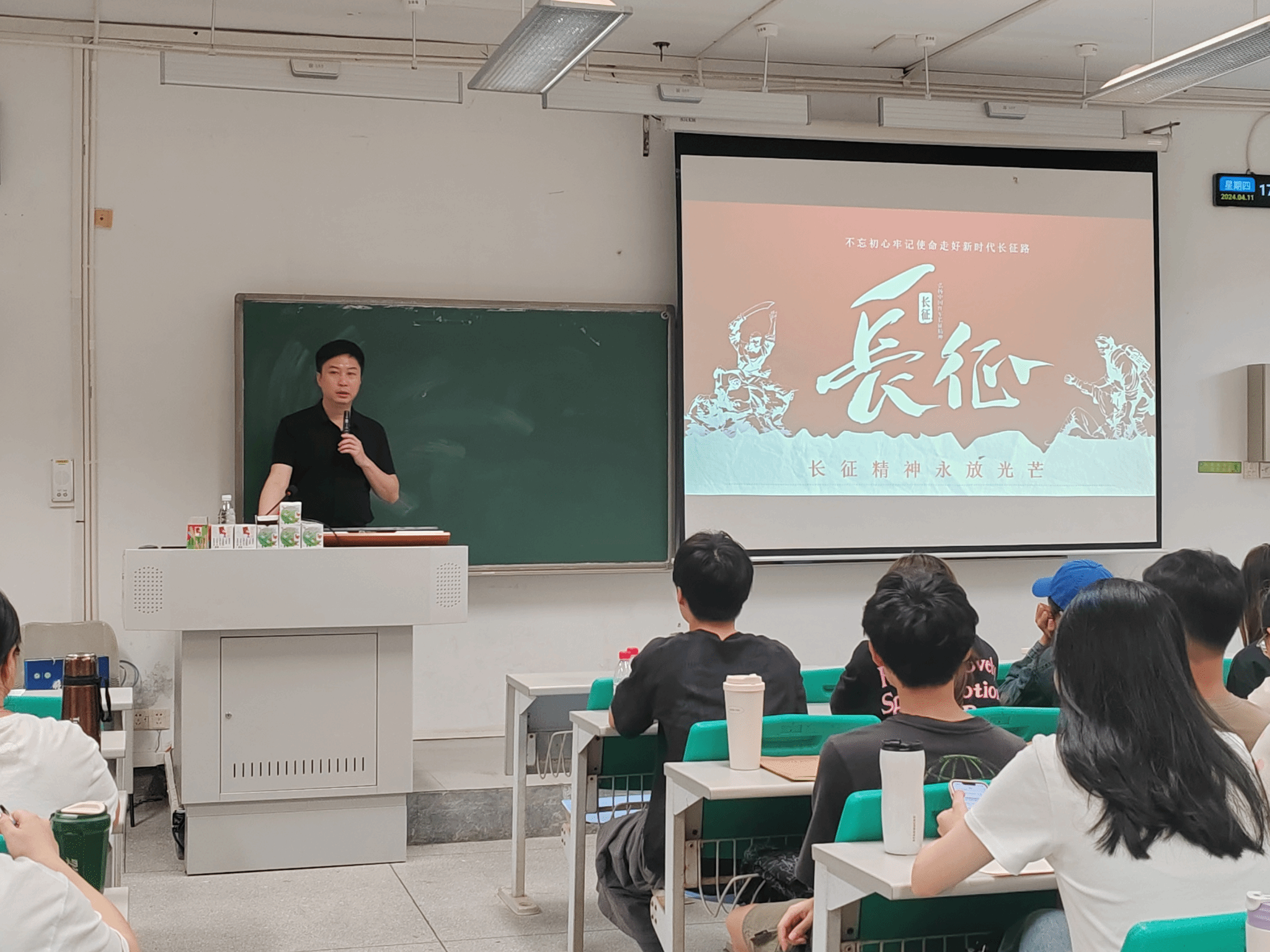杨帆副书记首先向入党积极分子介绍了长征的背景,回顾了长征的主要路线,紧接着通过一张张幻灯片,带着入党积极分子重温长征中的关键事件和重要战役,让入党积极分子深刻体会到了革命先辈们艰苦奋斗、勇往直前的长征精神。他还结合自己在井冈山的学习经历和参观中国共产党历史展览馆的见闻作了生动有趣的分享,加深了大家对长征胜利的伟大意义和对党史的理解。