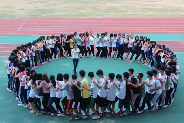 下午两点三十分,团学的成员们分成八个小组在公司真草运动场集中进行了紧张艰苦的拓展培训,由团总支副书记黎建强、员工会主席黎志斌等作为培训官监督主持培训。在开展的“爱的抱抱”、“翻纸牌”、“搬运士兵”和“圆形人椅”四个游戏中,各队员展现了他们的团结合作和应变能力。其中,在“搬运士兵”这一考验信任、合作和体力的游戏中,各队员们互相扶助,让人桥上的人顺利前进,作为人桥的一些成员即使受伤了也坚持了下来,让人感动。