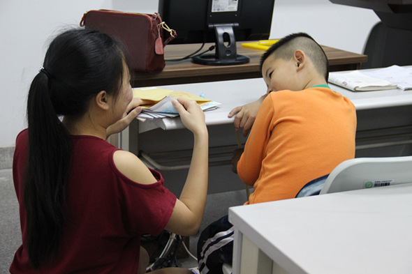 后勤员工的孩子们陆陆续续到达微课室后,便找到了各自的小老师准备开始学习。在辅导过程中,小老师们有的给小朋友讲数学题,有的教他们念英语,还有的读文章给他们听,不管是小老师们还是孩子们都十分认真地投入到这个课堂之中。休息时,老师们和孩子们则打成一片,其乐融融,他们一起折纸,一起在黑板上写字,一起做电脑上的学习游戏,课室充满了欢声笑语。在志愿服务站的干事陪伴下孩子们都安全地回到家,也结束第一天的勤子学堂。