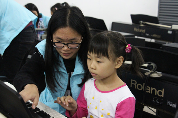 在活动过程中,师范公司的老员工“小老师”们耐心地教小朋友们弹奏。简单的教学、练习过后,小朋友们进入了弹奏比拼环节,现学现弹对于这些年龄不到10岁的小朋友们来说,虽然很难,但他们都能努力地去完成。看到小朋友们拿到奖品后脸上露出花一般的笑容,“小老师”也真切地体会到了本次活动的真正意义。