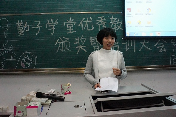 优秀教员代表上台发言