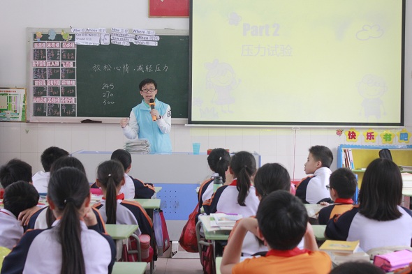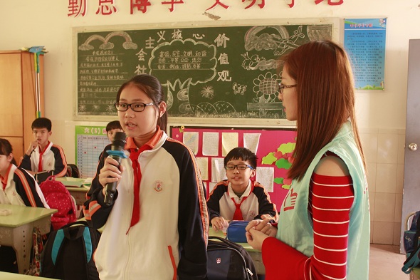 下午的阳光热烈如火,而刚进课室的志愿者们也同样感受到了同学们火一般的热情。对于“新老师”的到来,大朗镇实验小学的同学们显得异常兴奋,他们叽叽喳喳地簇拥着“新老师”,积极讲述着自己在一个寒假的所见所闻。在课堂上,面对“新老师”们提出的问题时,同学们依旧热情高涨,每个人都带着迫切而又自豪的神情,高高地举起小手,希望在老师和同学面前好好地表现一番。