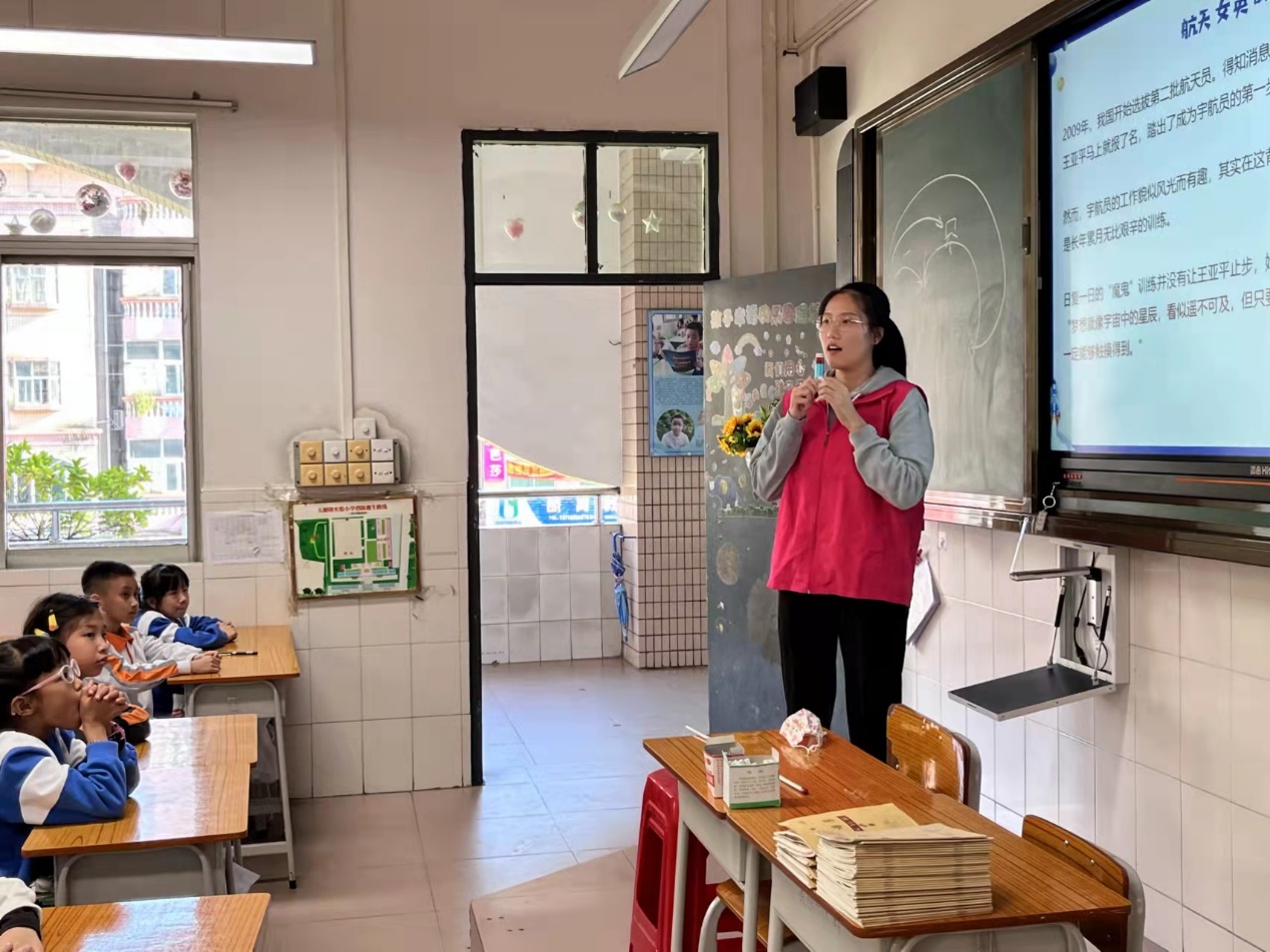 2021年11月25日下午,伟德国际1946感恩义教志愿服务队前往东莞大朗实验小学,针对三年级共四个班级的员工开展以“神舟发射,再探苍穹”为主题的义教活动。