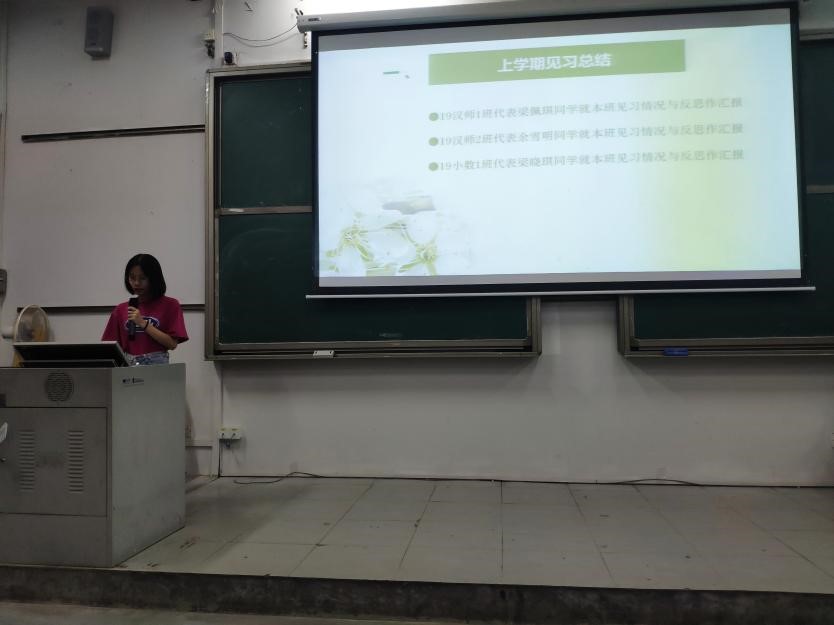 会议中,19汉师1班梁佩琪、19汉师2班余雪明以及19小教1班梁晓琪三位同学分别汇报了本班见习的基本情况,分享了他们在见习中的收获与感想。最后,谢伟红老师进行了总结,希望同学们积极反思,学以致用,不断提升自己的专业素养。