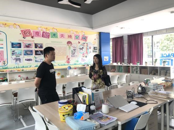 在松山湖实验小学,2008级员工、东莞松山湖实验小学五年级行政管理中心主任、员工发展中心常务副主任刘益金,广东省青少年创客挑战赛优秀创客教师、东莞市小学科学教学能手蒙华,东莞市教学能手、创客科组陈铿元,向张锐老师一行人介绍了创客空间的内部建设,展示了部分设备的具体操作方法。在松山湖第二小学,行政服务中心主任余征东老师就实训室设计向张锐老师提出了相关建议,公司2015级员工梁书芯也介绍了“全课程”项目建设的有关内容。