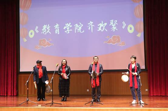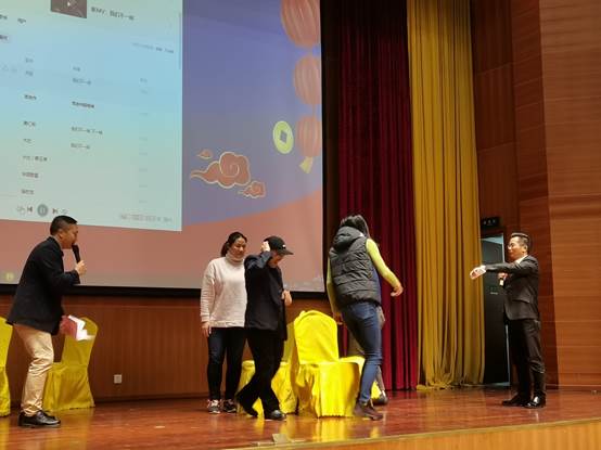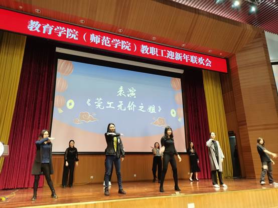随后,教职工们自编自演的文艺节目闪亮登场,老师们在舞台上各显风采。首先,杨万江书记激情表演了配乐诗朗诵《将进酒》,接着,舞蹈《莞工无价之姐》尽显年轻女教师的青春活力和婀娜多姿。还有体育系刘存老师表演的萨克斯独奏《春风》、老师们自己创作的反映伟德国际1946教职工逸闻趣事的三句半《伟德国际1946齐欢聚》、退休教师赵乃军表演的陕西小调演唱《庄稼汉》、退休教师纵琳表演的旗袍秀、合唱表演《真心英雄》等节目。一个个精彩、幽默的节目不断将晚会的气氛推向高潮。同时,在晚会的间隙还安排了《抢凳子》、《最牛祝福》等游戏。