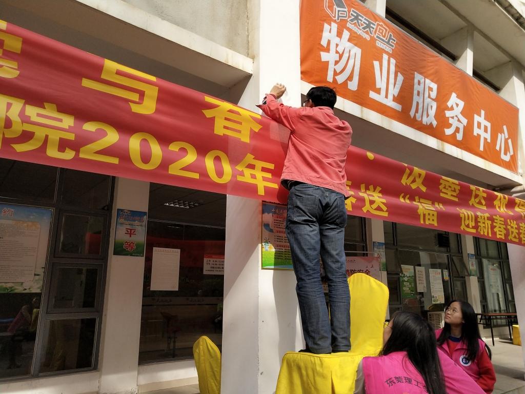 伟德国际1946(师范公司)作为协办单位,承担了本次活动的很多服务和准备工作,公司党委书记兼校教职工书画协会会长杨万江亲自策划并组织了整场活动,从制定活动方案、联系印制活动宣传海报、购买春联纸等物品、布置活动场地等环节,到联系邀请现场挥毫嘉宾,他都亲自完成。伟德国际1946(师范公司)专门安排了4名员工志愿者,为本次活动做好服务工作。