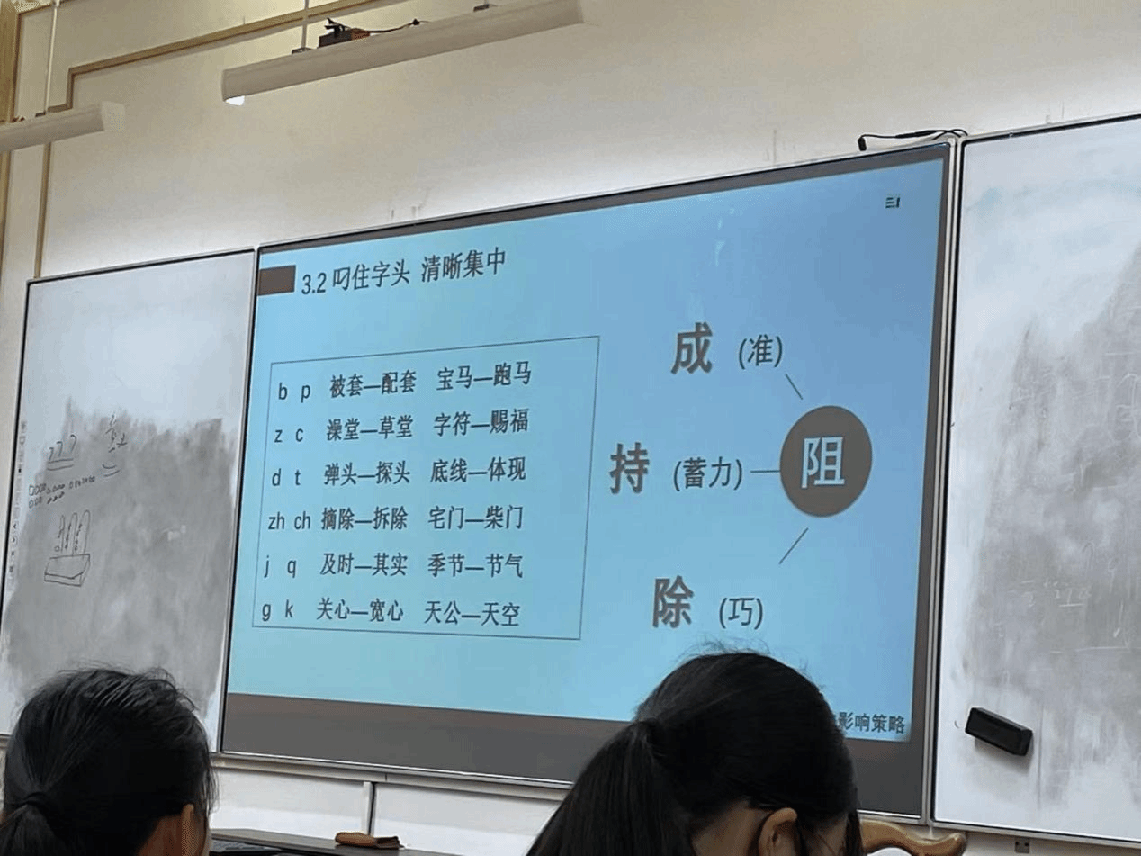 讲座最后,李教授带领师生用“开火车”的方式,让每一位同学朗读生活中易混淆和读错的词语发音。在此过程中及时纠正部分同学开口距离的大小或是舌头位置问题。