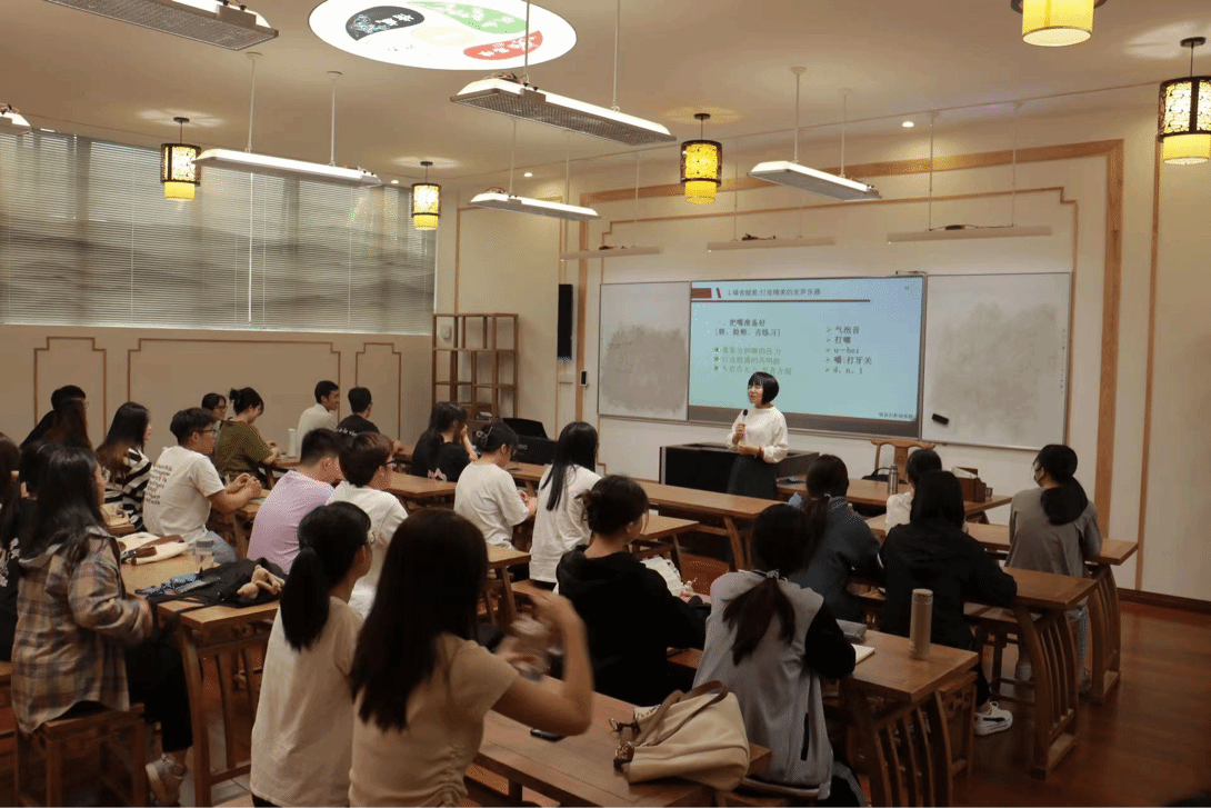 李教授在讲座中讲解了主持人语言表达的策略,发音吐字的字正腔圆,掌握正确的表达和发音方法才能让语言更清晰。首先,李教授带领现场全体师生一起练习了一套打开口腔和活动、放松嘴巴的方法。其次,她解析了唇、丹田、共鸣等多种方式的用法,以及如何采用悄悄话练习法快速掌握用气发声的训练方法。接着,李教授还讲解了语言音调的高低起落、节奏的快慢、声音的集中明亮等发音与表达的训练要点,提示大家主持要做到以气传情,让语言有温度。