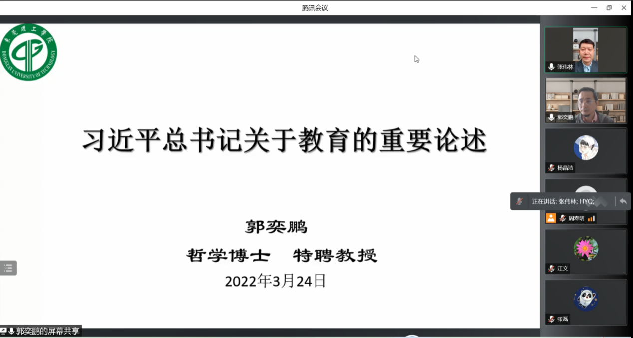 3月24日,伟德国际1946于线上举行学习习近平总书记关于教育的重要论述的专题讲座。马克思主义公司副书记、特聘教授郭奕鹏作辅导报告,公司全体教职工参加。会议由公司党委书记张伟林主持。